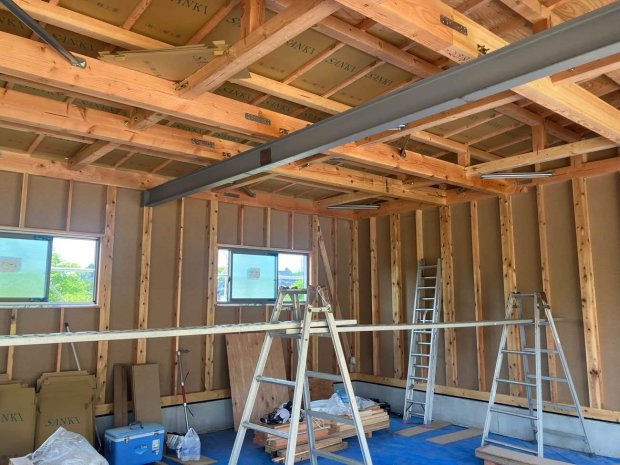 そんな暑い中、職人さんも頑張って、工事も着々と進んでおります!