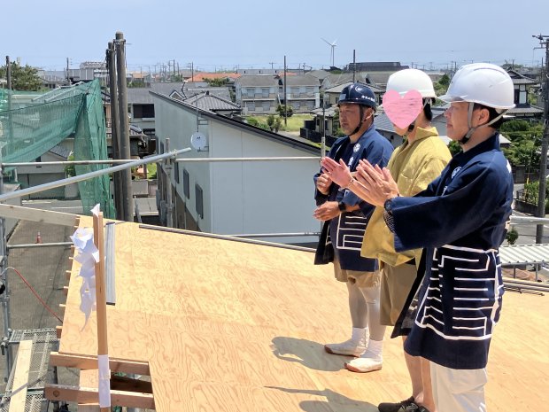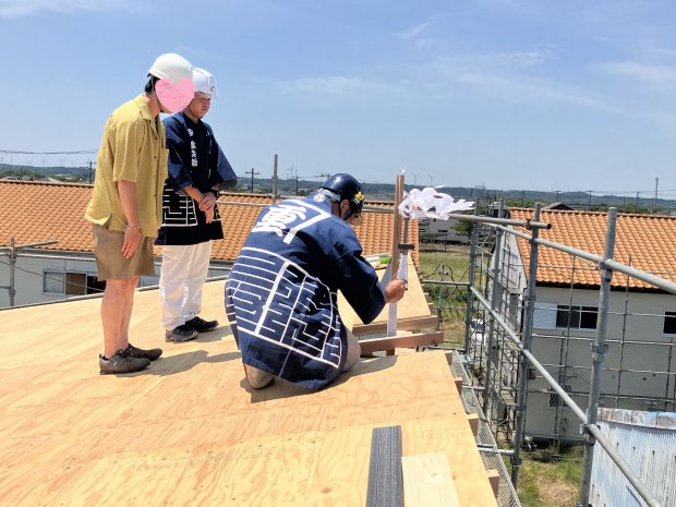 そんな秋も感じられる季節になりましたが、夏に建て始めたお客様の上棟式を紹介いたします。