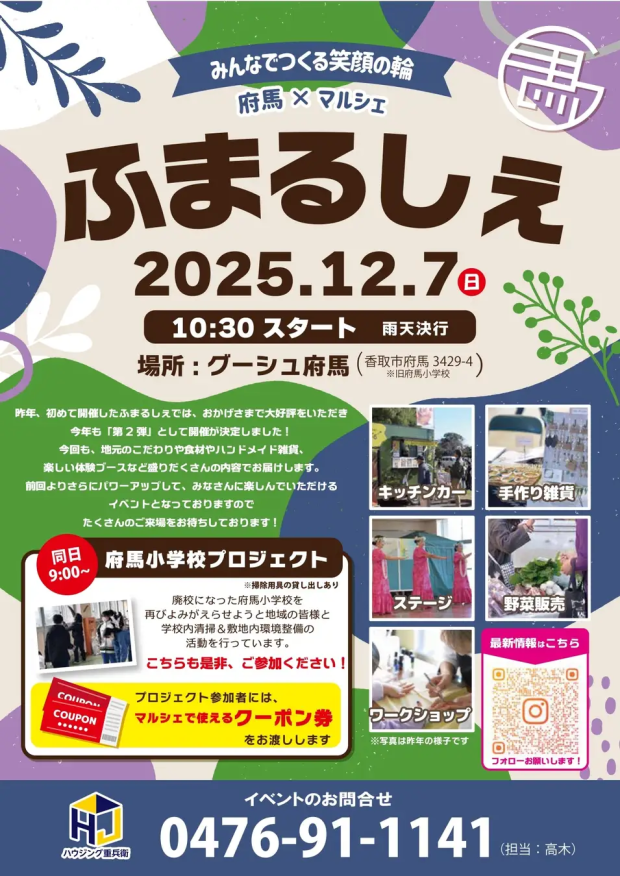 ふまるしぇとは、12月7日(日)に開催したグーシュ府馬(旧香取市立府馬小学校)を会場とした地域活性化イベントです!