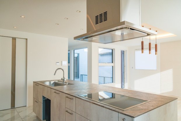 2階にキッチンがある間取りでキッチンハウスのキッチンが設置されています。