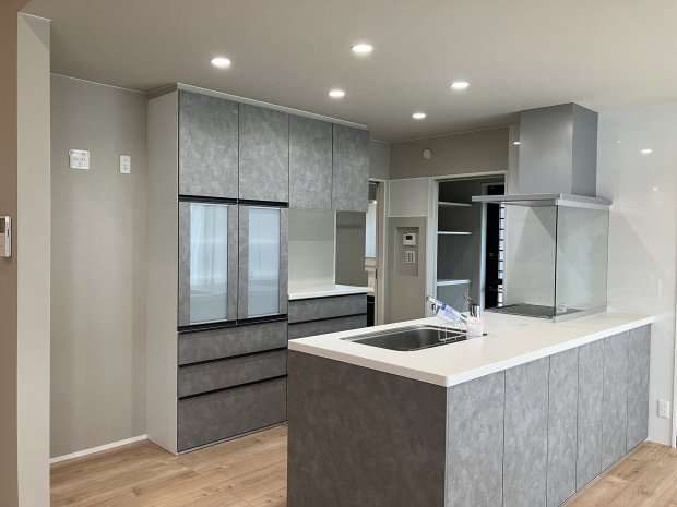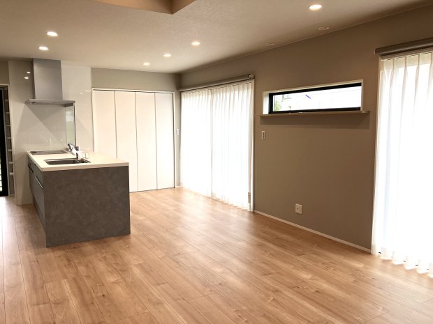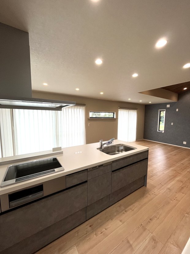 キッチンが主役。ダウンフロアのある大空間LDKの家